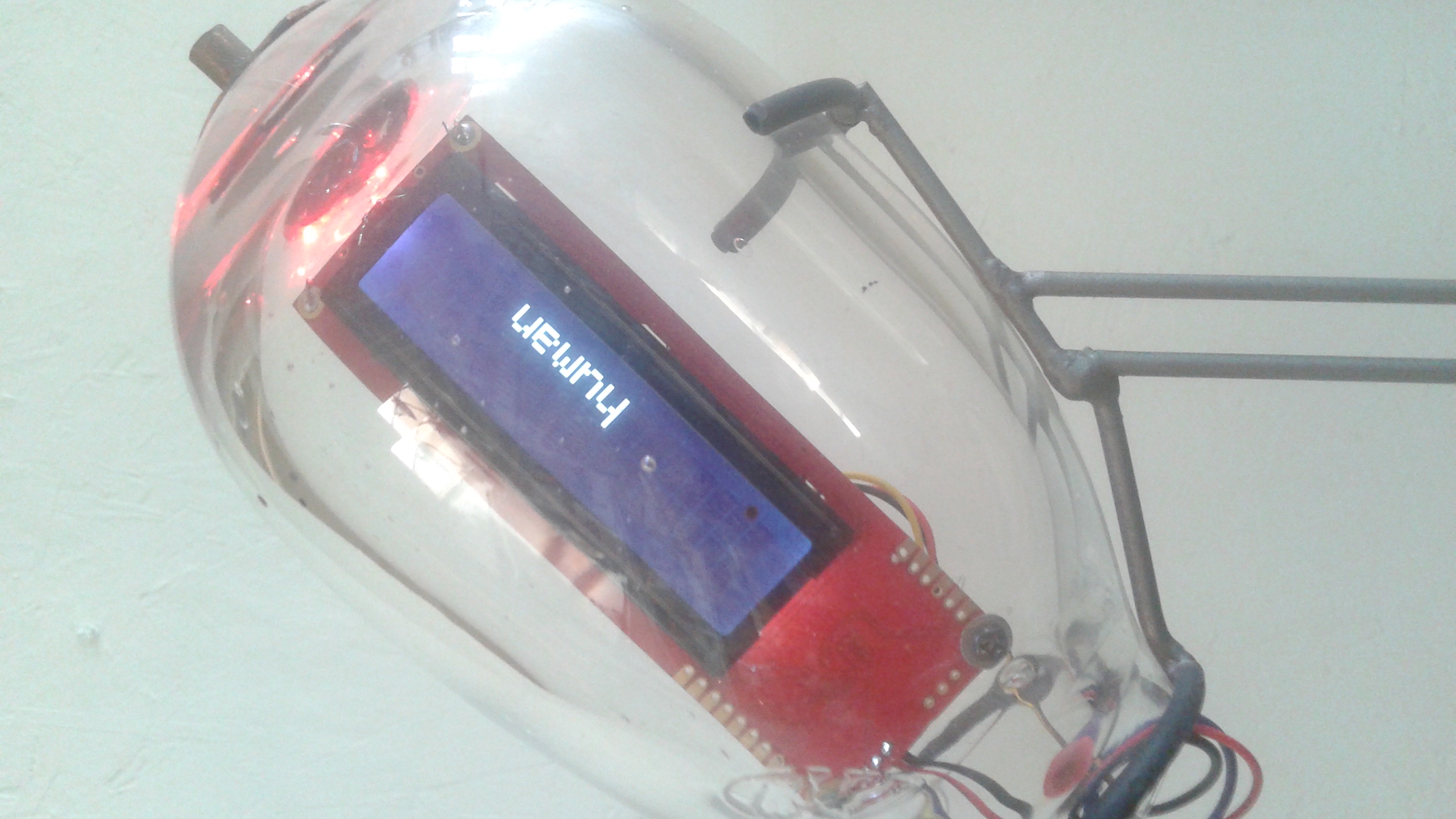 Luke Blackstone Desktop Messenger steel, aluminum, blown glass, electronic devices, hardware 11" X 20" X 10" 2016 |
