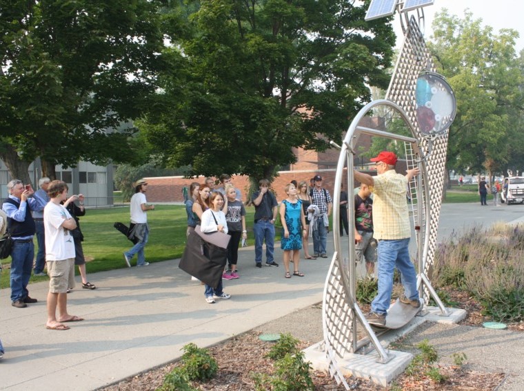 Luke Blackstone A Gesture for Planetary Alignment Created for Central Washington University, Ellensburg Washington, 2012 Comissioned by the Washington State Arts Commission stainless steel, glass,solar panels, mechanical linkages, polycarbonate, electrical components 12 ft. X 5 ft. X 14 ft. |