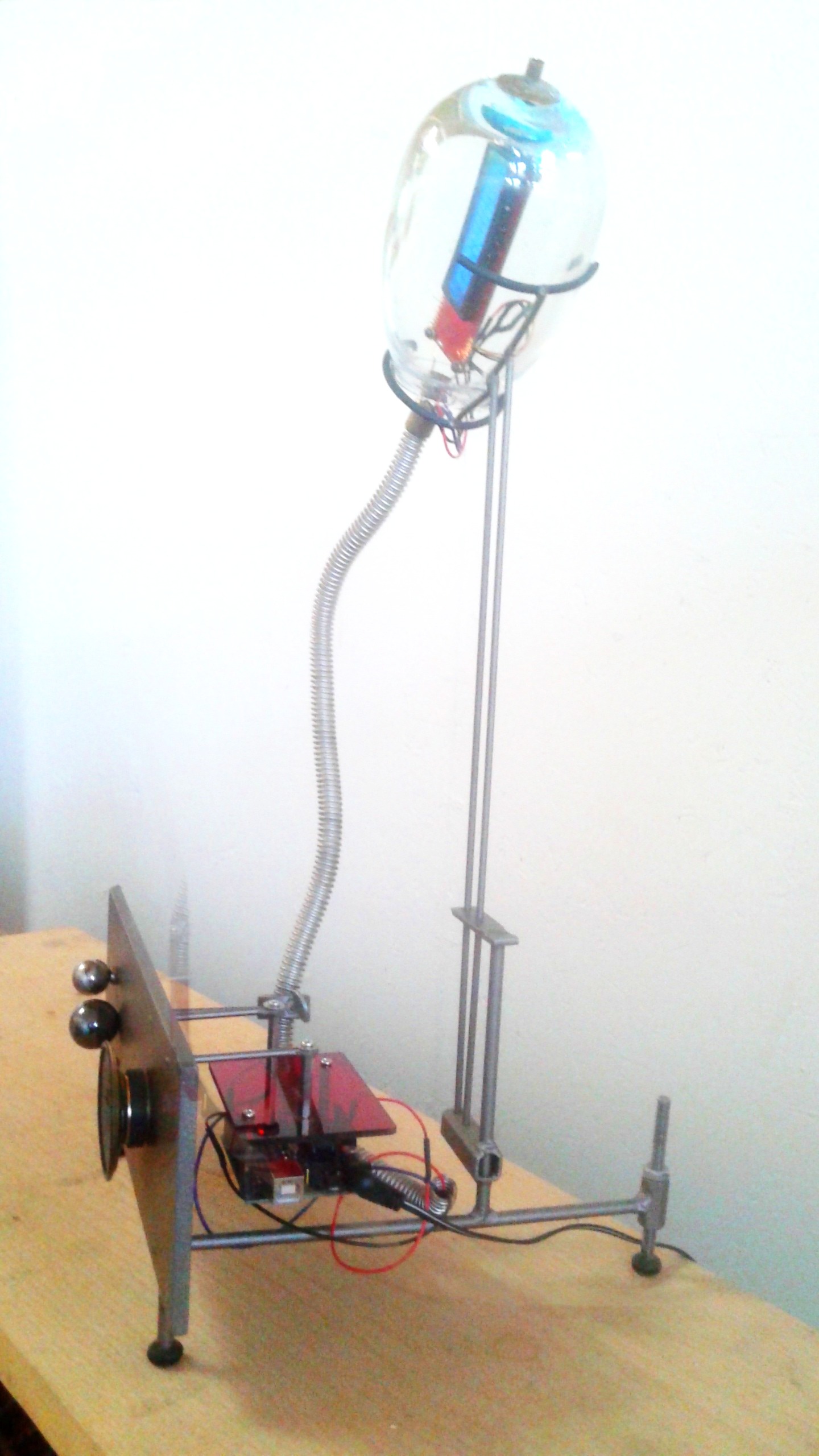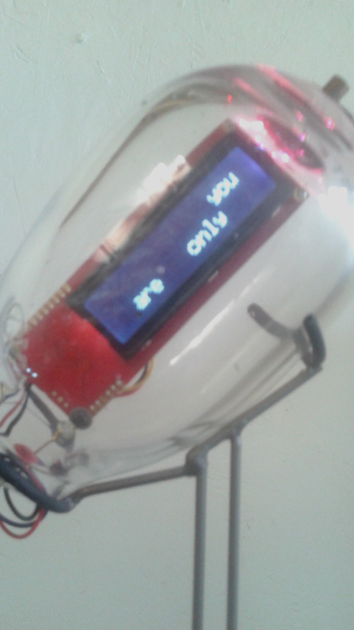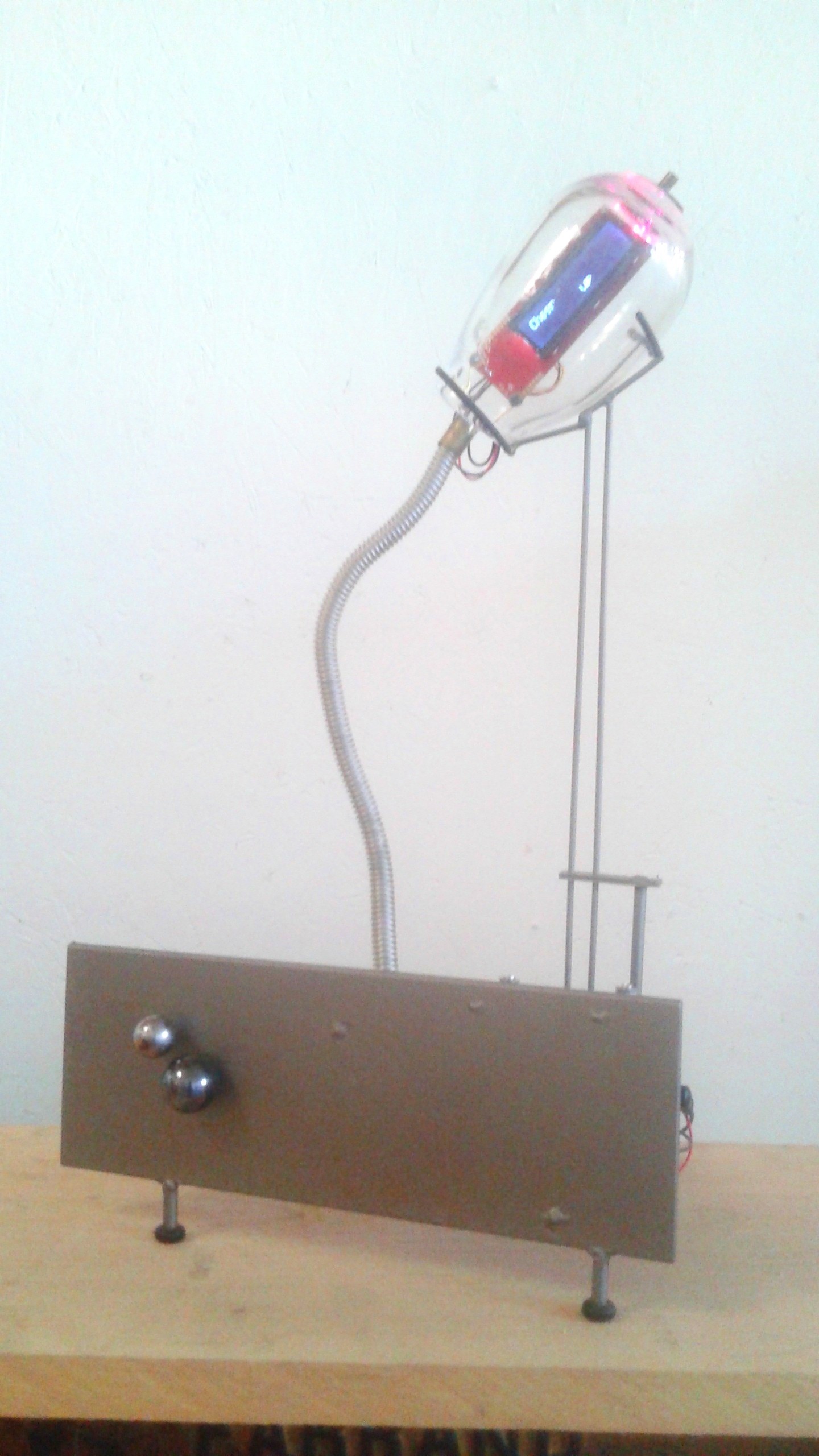 Luke Blackstone Desktop Messenger steel, aluminum, blown glass, electronic devices, hardware 11" X 20" X 10" 2016 |